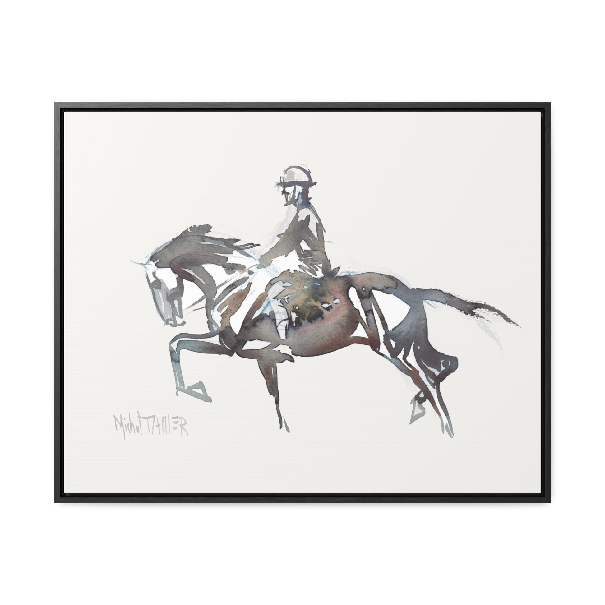 Watercolor painting of a rider and its French Trotter enjoying a session together.