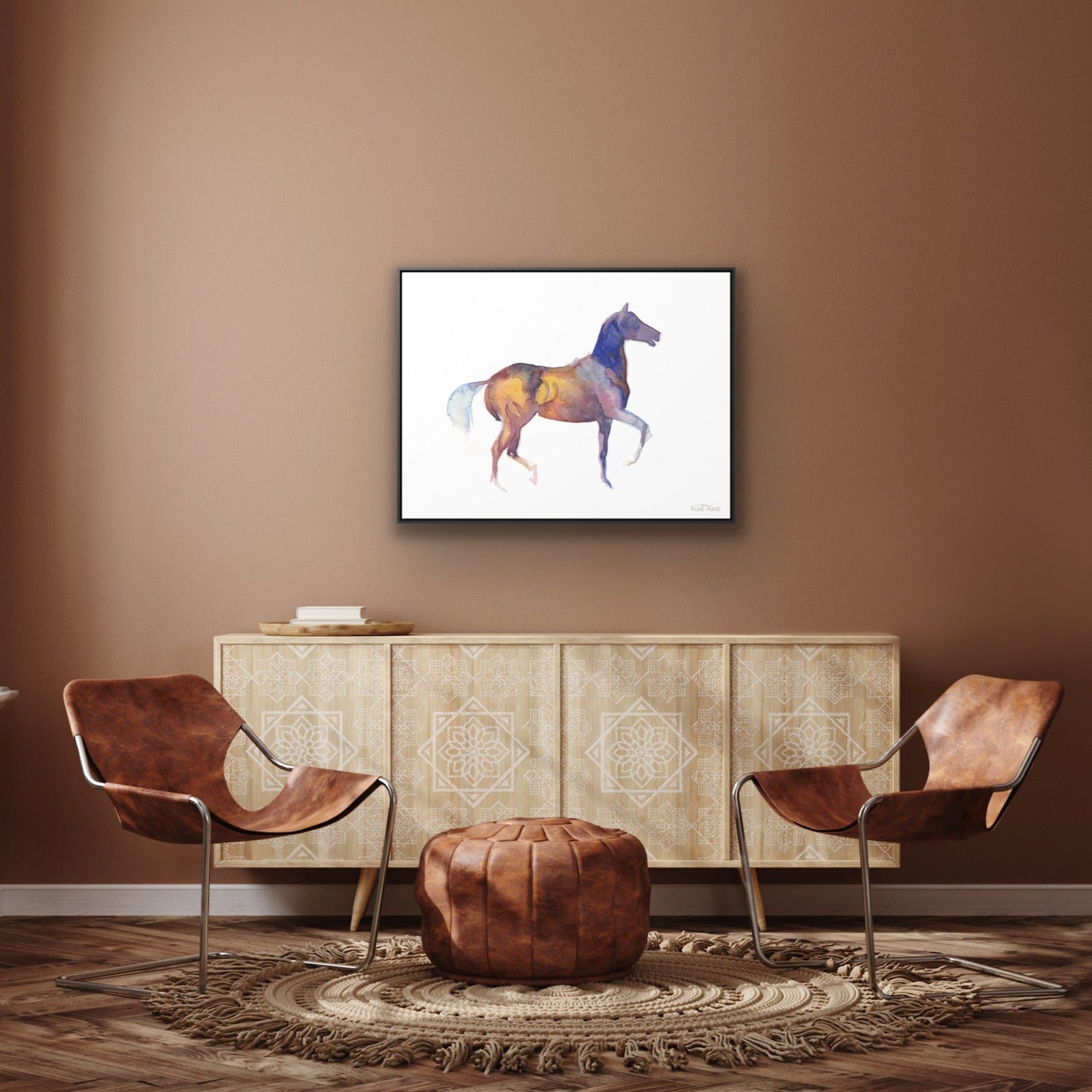 Colorful and lively profile silhouette of an Anglo-Arab horse.