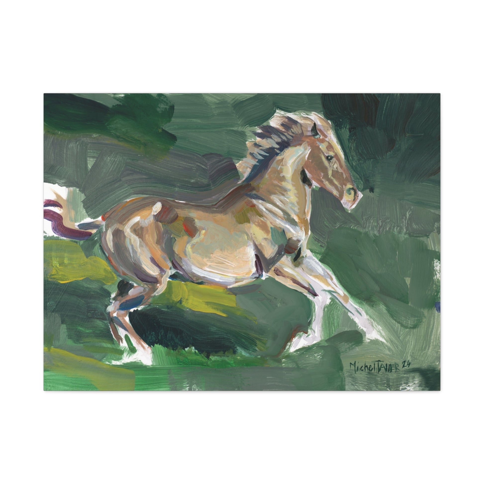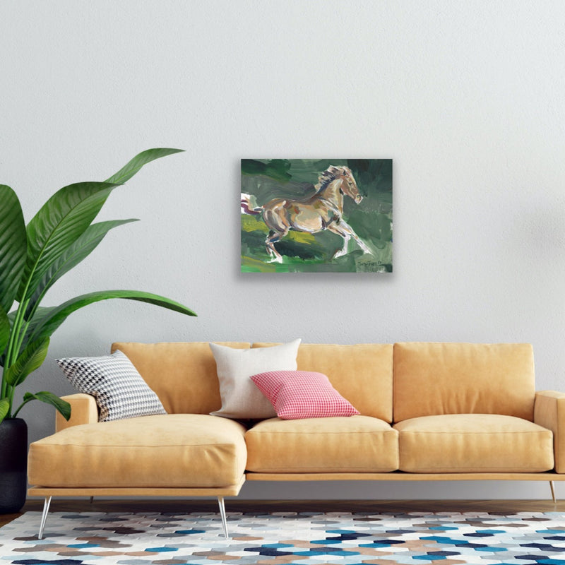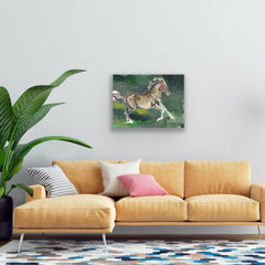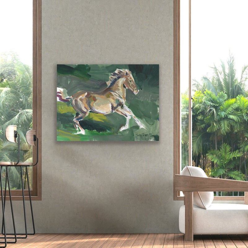 Acrylic impression of a horse exuding energy and vibrancy in its natural habitat.