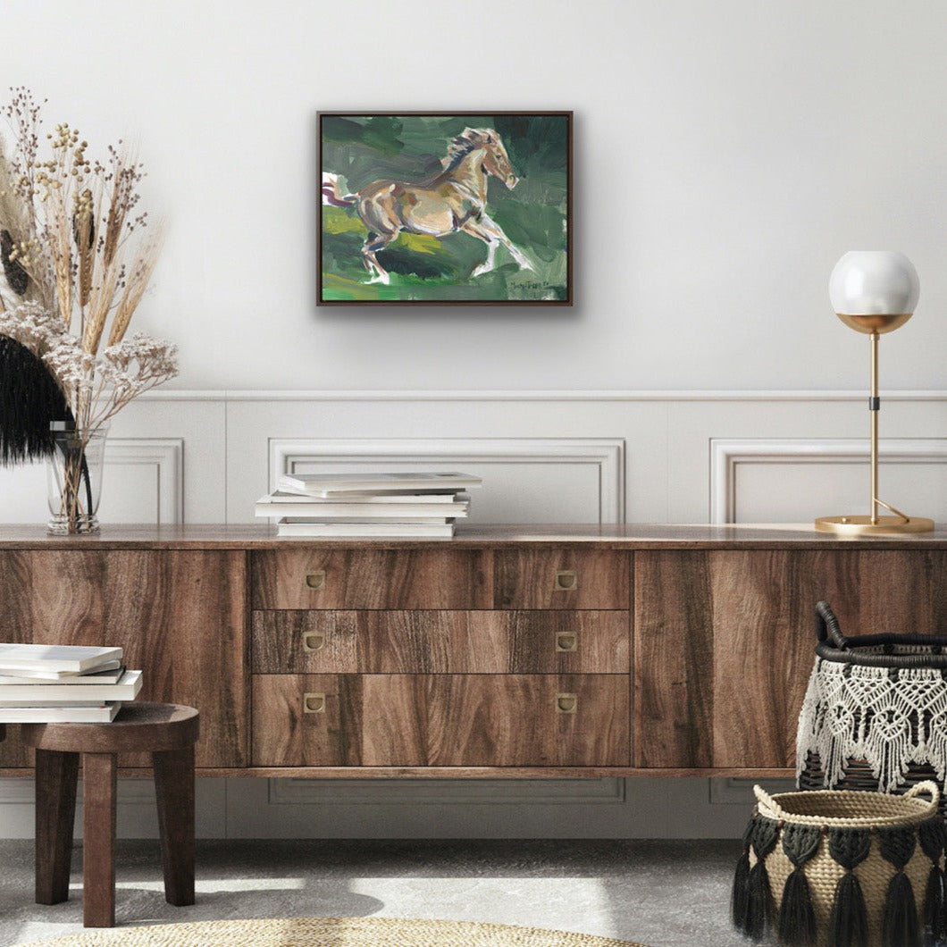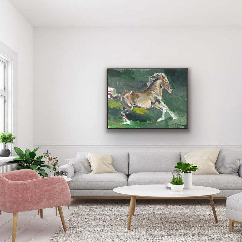Acrylic impression of a horse exuding energy and vibrancy in its natural habitat.