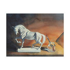 Watercolor portrait of a copy of a horse sculpture by renowned French sculptor Isidore Bonheur.